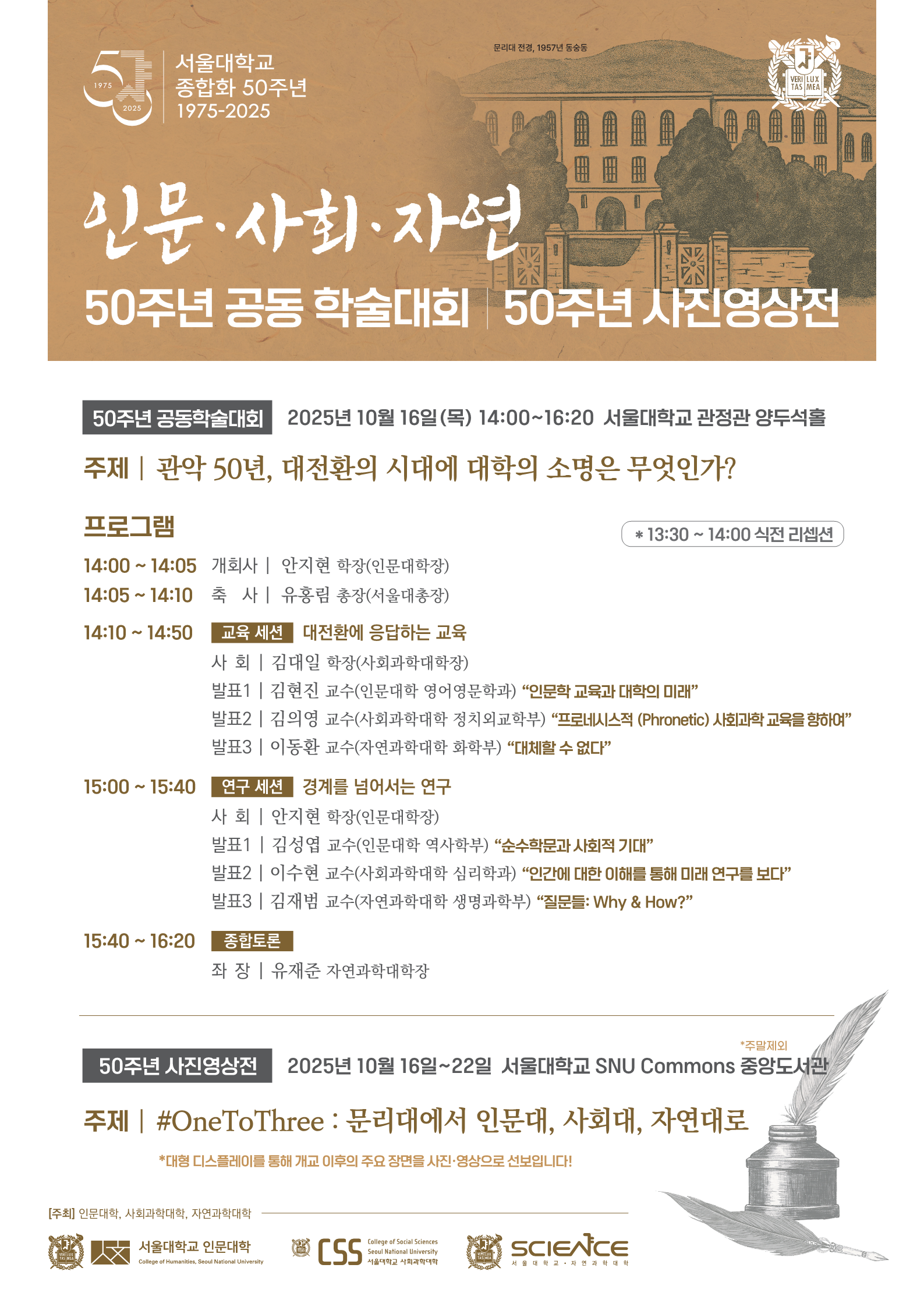 서울대학교 인문대학은 1975년 출범 이후 반세기의 발자취를 돌아보고, 새로운 50년의 비전을 함께 열고자